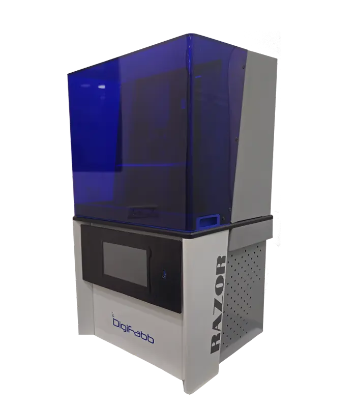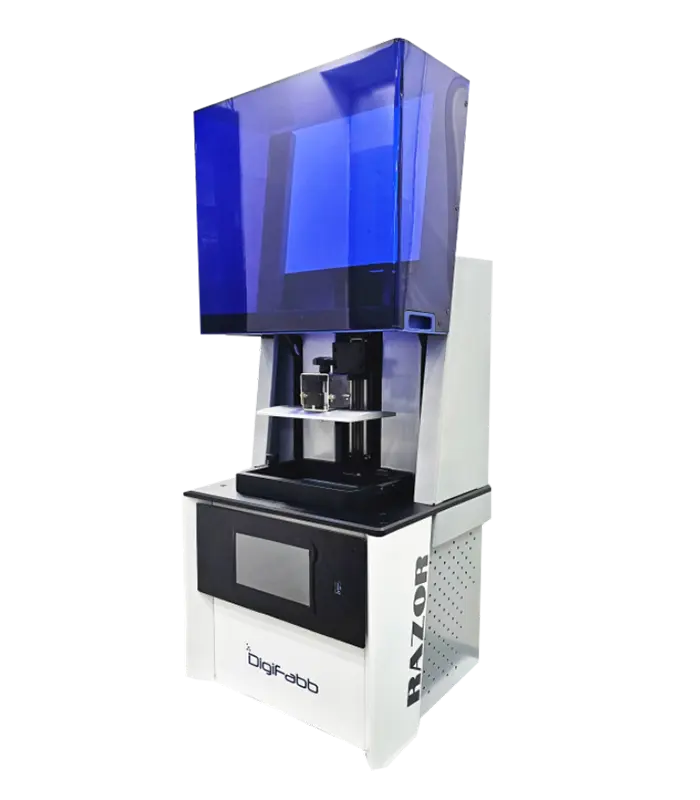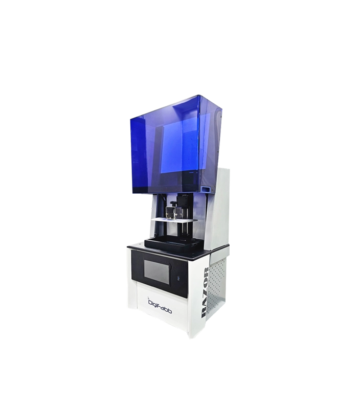 The DigiFabb DF-RAZOR is a compact 3D printer with DLP technology. It offers a 125 x 70 x 150 mm build volume, 49 micron XY resolution (2560 x 1440p), and a layer thickness options from 10 to 100 micron. With a production capacity of 50 grams per day, it supports both direct castable and non-castable resins. The DF-RAZOR is a versatile and precise solution for various DLP 3D printing needs.